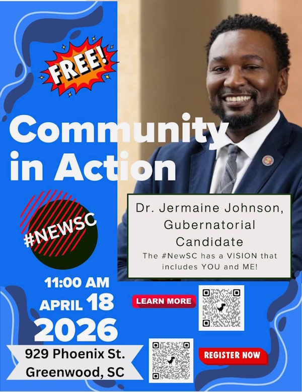 Here is a great chance to directly hear from Dr. Jermaine Johnson, a Democratic candidate for Governor of South Carolina.